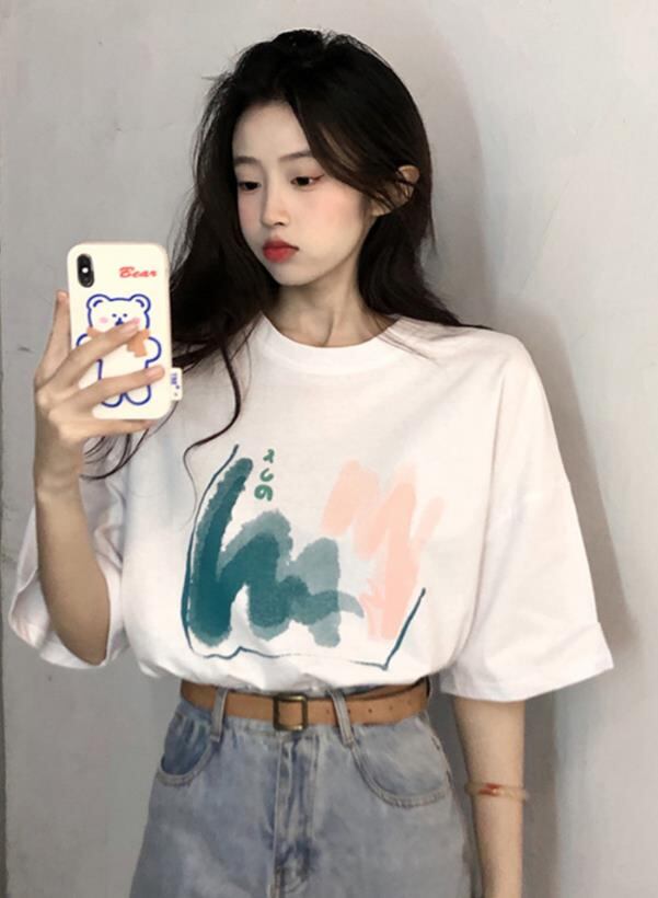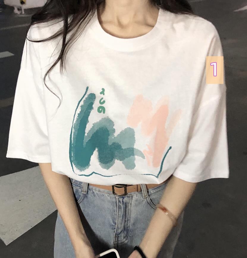 2022春夏新作 レディース 女 丸首 綿 プリント 半袖 Tシャツ トップス インナー 2色