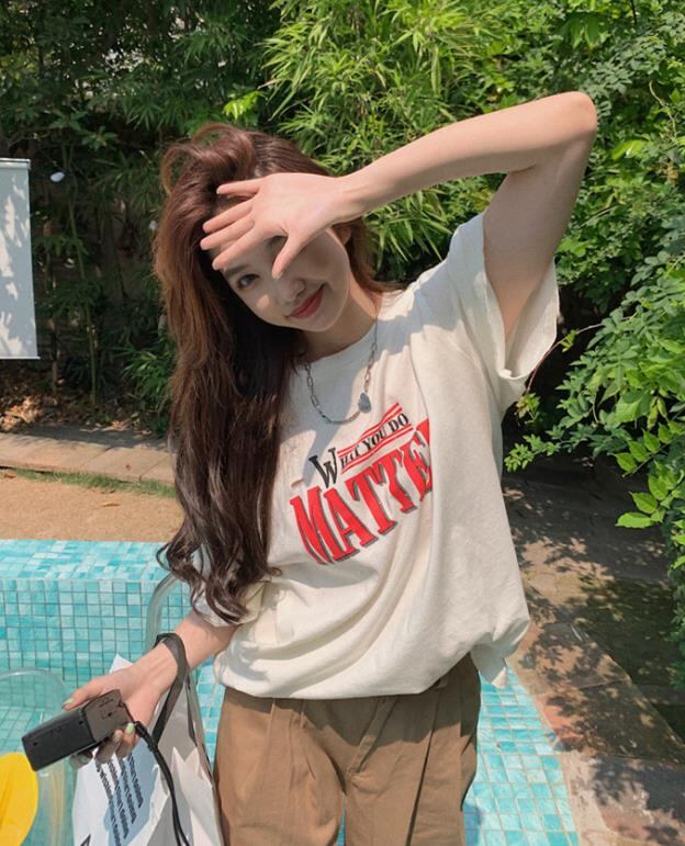2022春夏新作 レディース 女 プリント 丸首 半袖 Tシャツ トップス インナー 2色