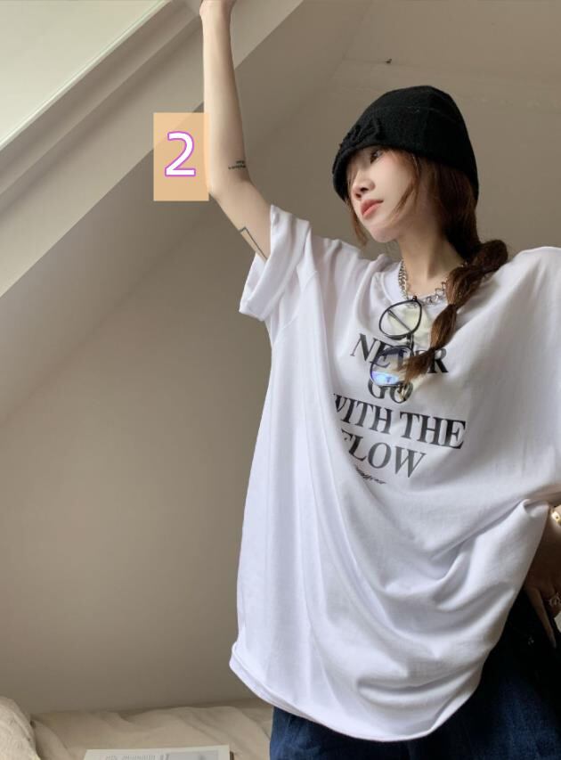 2022春夏新作 レディース 女 プリント 半袖 丸首 Tシャツ トップス インナー 3色