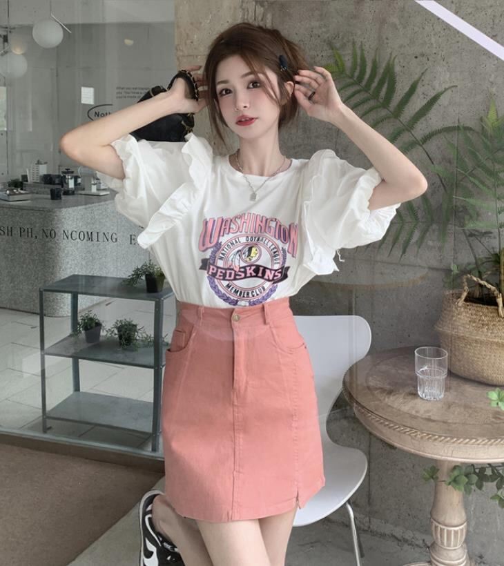 2022春夏新作 レディース 女 半袖 パフスリーブ プリント Tシャツ トップス インナー