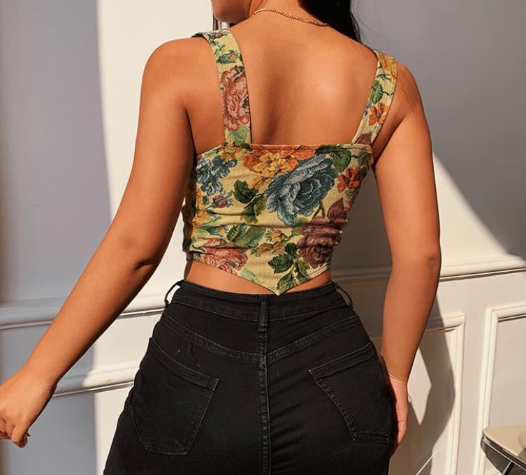 P-春夏新作 レディース 女 袖なし 花柄 トップス Tシャツ インナー キャミソール タンクトップ 2色