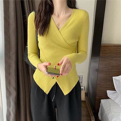 カシミヤタッチ ベーシックニット ニットセーター アンダーウェア Vネック ウエスト引き締め ブラウス レディース トップス 百掛け アウター クロス 長袖 シャツ 日焼け止め