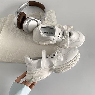 2024 秋 可愛い ゆったり ボリュームソール スニーカー 足首ほっそり 厚底 シューズ 脚長効果 美脚見え 学生 通学 シンプル カジュアル 涼しげ スタイルアップ kawaii 靴 白 | HUG-L