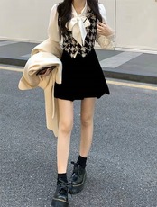 3点セットスカート トップス ベスト ショートミニ OL 通勤 レディース セットアップ 上下セットコートコーデ 女っぽ カジュアル きれいめ 大人っぽ 型 フレンチ 秋 冬春