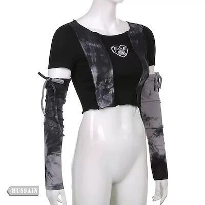 2024秋 長袖 Tシャツ ショート丈 カットソー トップス カジュアル 配色韓国系ストリート丈へそ出しK-POPタイトネックスリーブ 肌見せ T ファッションレディース かわいいハーフ衣装風冬付き