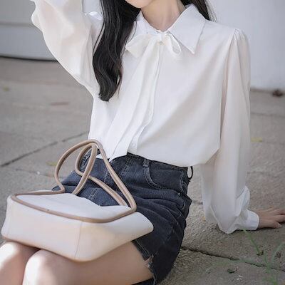 2024 秋冬パフスリーブボウタイブラウス