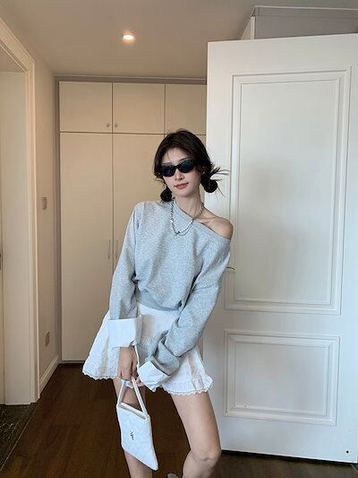 2024 秋冬トップス 長袖 肩見せ 丈短め 秋 黒 おしゃれ かわいい 韓国ファッション レディース お出かけ