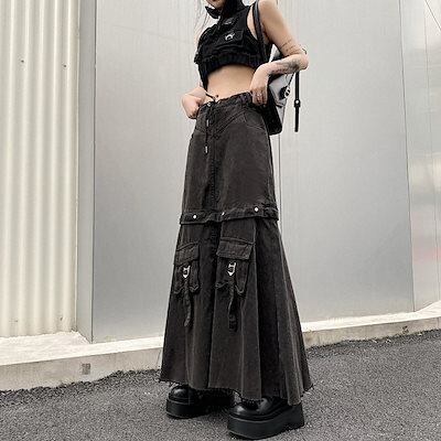 2024 春秋 スカート ロング丈 ポケット ハイウエスト ロング スカート 美脚効果 脚長効果 細見え 冬 おしゃれ かわいい サイド韓国系ファッション レディース お出かけ