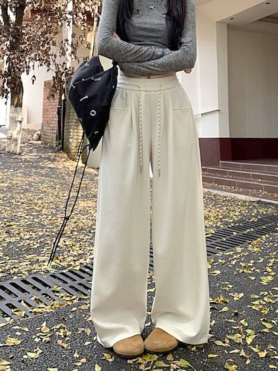 2024 秋 パンツ ロング丈 ハイウエスト ズボン 美脚効果 脚長効果 細見えサイド 冬 春 おしゃれ かわいい 韓国系ファッション レディース お出かけ トラック