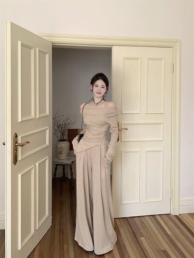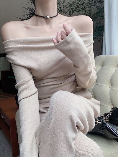 2024 秋冬 トップス 長袖 かわいいラウンドネック トレーナーTシャツ 肌見せ レディース ストレート韓国風ルーズゆったりカジュアルおしゃれサイズシルエットファッション系コーデ衣装上下セットアップ | HUG-L