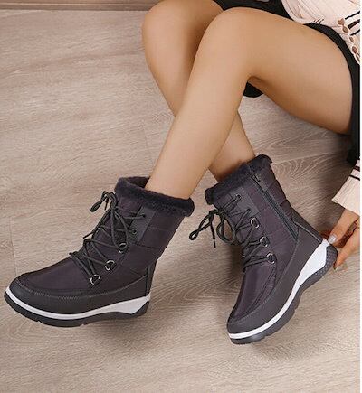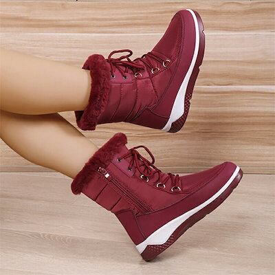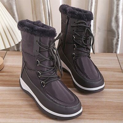 防寒 ムートンブーツ スノーブーツ レディース ブーツ 歩きやすい 厚底 ショートブーツ 裏起毛 冬 シューズ ボア 靴 撥水 スノーシューズ ペタンコ ローヒール アウトドア 裏ボア 軽量 履きやす | HUG-L