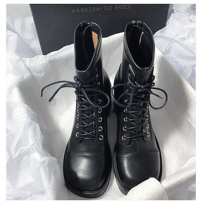 本日の限定商品2024秋 新作 新品登場 マーティンブーツ ブーツ ミドルヒール 太ヒール スクエア靴 ーシューズ ヒール レディース 通勤通学 かわいい 美脚厚底 大人気 ショートブーツ 福袋 | HUG-L