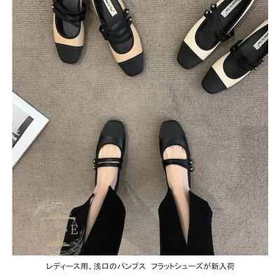 パンプス レディース フラットシューズ ラウンドトゥ ダブルベルト ぺたんこ 滑りにくい 脱げない 走れる シンプル 美脚 通勤 春夏秋
