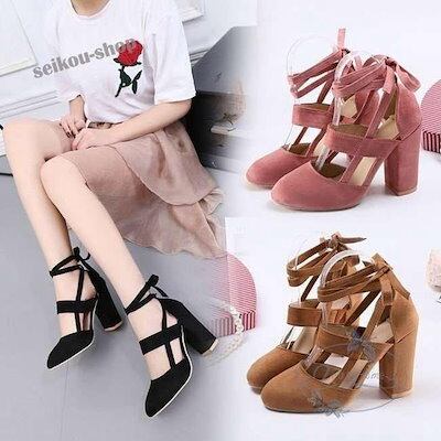 パンプス レディース ストラップ 太いヒール 華奢 おしゃれ 美脚 厚底 ハイヒール スエード 履きやすい 大きいサイズ 可愛い 全3色