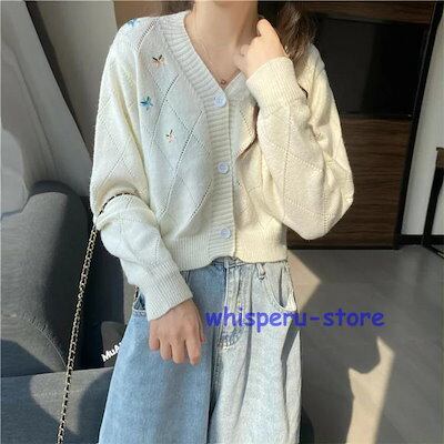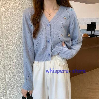 レディース トップス カーディガン ニット 秋 長袖 ブルー ベージュ ライトニット ゆったり カジュアル ファッション 通勤 普段着