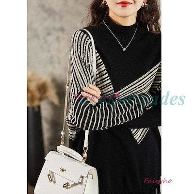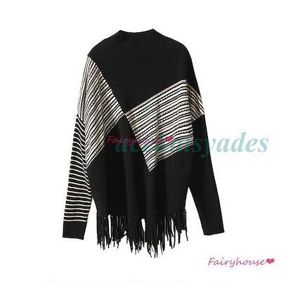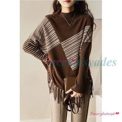 新品更新 ニットトップス レディース 秋冬新作 40代 長袖セーター 配色 ゆったりプルオーバーセーター フリンジ裾 オシャレ韓国風 通勤 大人ニットインナー 30代 50代