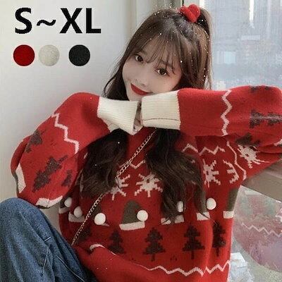 セーター クリスマス ツリー柄 ニット レディース 秋 冬 秋冬 ゆったり 長袖 おしゃれ かわいい パーティー プレゼント 通勤 通学 暖かい サンタクロース レッド ブラック ベージュ 20代 3 | HUG-L