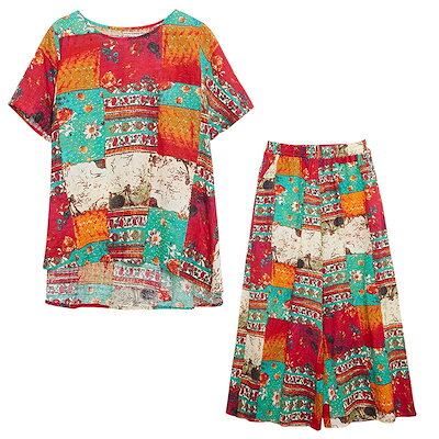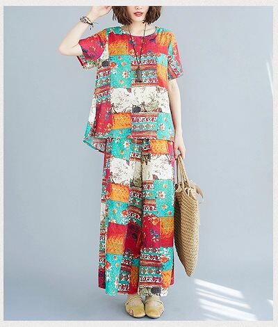 「ファットガール」 民族風 上下セット 春夏 レディース 大人 30代 40代 中年 体型カバー 大きいサイズ セットアップ 中華風 ジャージ 卒業式 ママ フォーマル スーツセットアップ 1 メガ割 | HUG-L