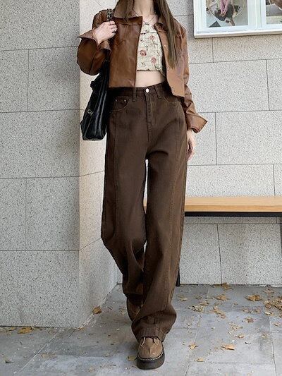 2024新作レトロ ジーンズ レディース ハイウエスト ゆったり ストレート ワイドパンツ 秋 かっこいい!スラックスパンツ コーデュロイパンツ