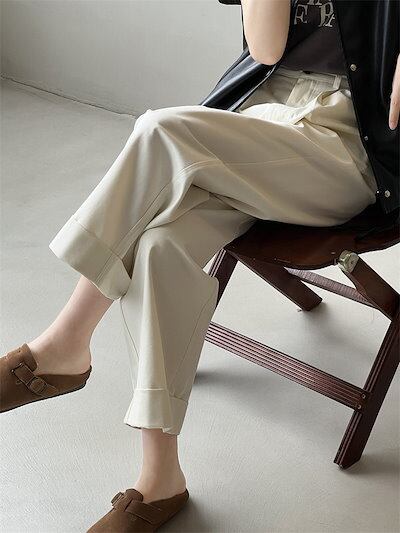 ワイドパンツ レディース 秋 ボトムス パンツ ロングパンツ ハイウエスト タックワイドパンツ レディース 秋 ウエストタック ゆったり 着?せ ズボン きれいめ 上品 カジュアル 通勤 仕事 オフィ | HUG-L