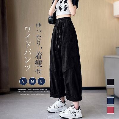 ワイドパンツ レディース バルーンパンツ ロングパンツ 薄手 ガウチョパンツ 長ズボン 涼しい イージーパンツ ボトムス ウエストゴム ゆったり 軽い ひんやり ズボン カジュアル 体型カバー 楽ちん | HUG-L