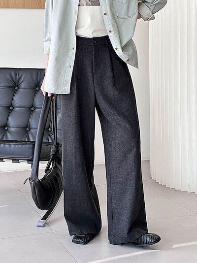 ワイドパンツ レディース ゆるフィット ロングパンツ ストレート パンツ ボトムス 通勤 大人 リラックス オフィス フォーマル ゆったり 楽ちん 体型カバー 美脚 カジュアル 無地 シンプル 上品 | HUG-L