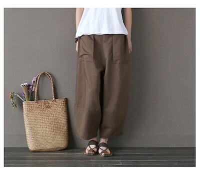 リネン パンツ レディース 涼しい バルーンパンツ アンクル サルエルパンツ 綿麻 イージーパンツ リネン コットン ワイドパンツ 体型カバー ボトムス 森ガール ズボン ゆったり 薄手 リラックス | HUG-L