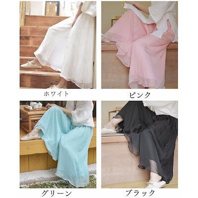 新品現物ワイドパンツ レディース 夏 ウエストゴム バギーパンツ カーチョ ズボン 6色 ハイウエスト シフォン 美脚 涼しい 無地 着痩せ 6色 30代40代 50代 50代