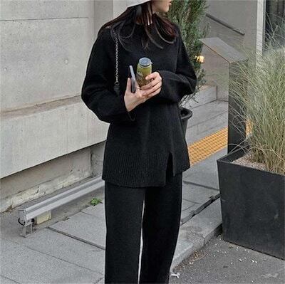 秋冬 新作 ニット 二点セット おしゃれ 気質 アウター レディースセットアップ 上下セット セーター ワイドパンツ セットアップ 通勤 シンプル 福袋