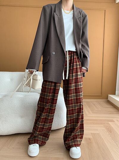 ワイドパンツ レディース チェック柄 ガウチョパンツ イージーパンツ ロング丈 パンツ ズボン ボトムス リラックスパンツ チェックパンツ 大きいサイズ ウエストゴム ゆったり 大きめ リラックス ス