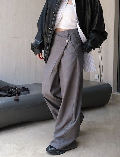 ワイドパンツ パンツ レディース タックワイドパンツ ボトムス アシメ ロング 無地 ワイド ゆったり 大きいサイズ 長ズボン ラップパンツ 変形 スカート風 美脚 上品 落ち感 キレカジ オフィカジ