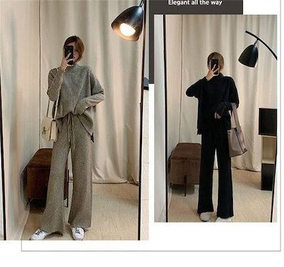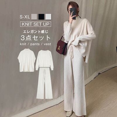 ニット セットアップ レディース 秋冬 カジュアル 大きいサイズ ニットセットアップ ニットセーター プルオーバー ワイドパンツ ニットベスト 長袖 ゆったり サイドスリット 厚手 タートルネック き