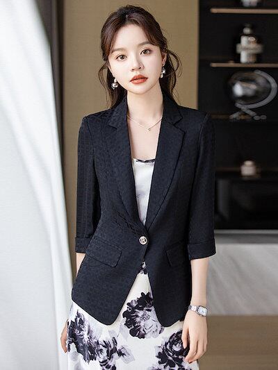 白ブレザー レディースデザインセンスニッチカジュアル夏薄手七分袖スモールスーツ シングル小ジャケットモデル