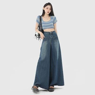 スラックスパンツ 2024新作 流行り デニムパンツ ハイウエスト ワイドパンツ ジーンズ レディース レトロ ゆったり ズボン脚長効果!ワイドパンツ デニムボトムス スキニーパンツ