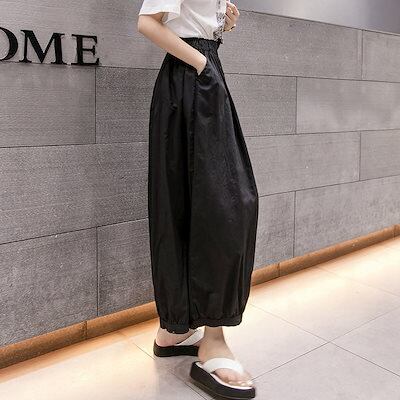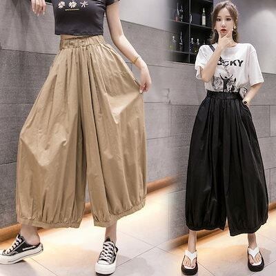 日本の作業着スタイルのランタンワイドレッグパンツレディースラージサイズルーズキュロットラージパンツ9パンツオールマッチワイドレッグカジュアルパンツ