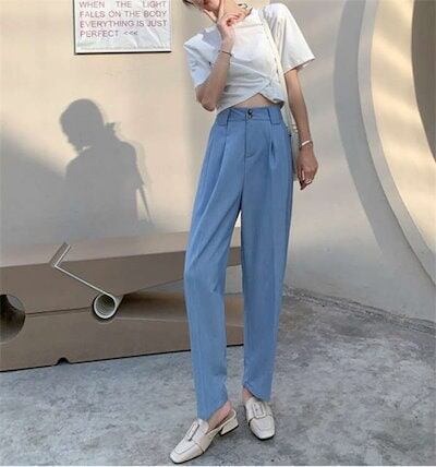 パンツ レディース ボトムス スラックス 長ズボン ストレート スーツ 春 夏 無地 ロング丈 パンツ タック シンプル フェイクポケット ハイウエスト スーツパンツ 細見え きれいめ おしゃれ カジ | HUG-L