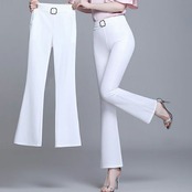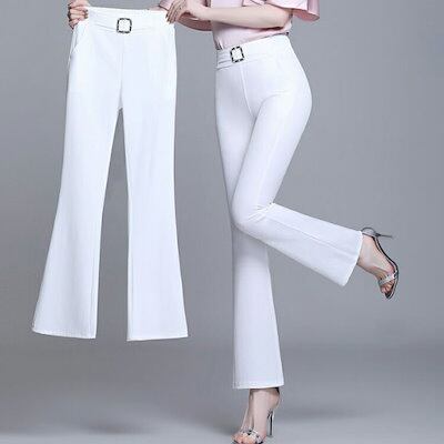 スラックス ズボン パンツ 9分丈 スラックス 美脚 10分丈 レディーズ 秋 脚長効果 ビジネス 通勤 仕事着 ひんやり 冷感 フレアパンツ 薄手 春 夏 大人 黒 ブラック 白 ホワイト 大きサイ | HUG-L