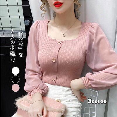 カーディガンサマーニットレディース薄トップスレディースファッション春夏作デザイン重ね着コーデかわいい