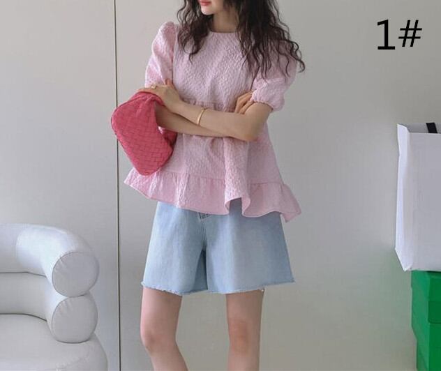 2023春夏新作 フレア ブラウス 半袖 韓国風 レディース Aライン おしゃれ 新色登場