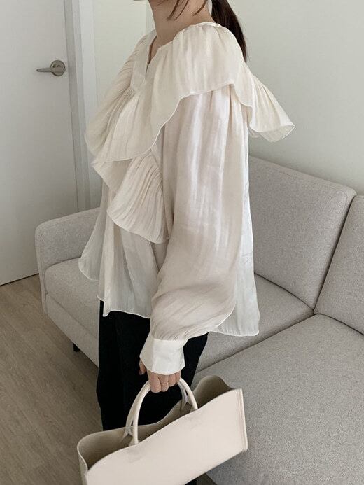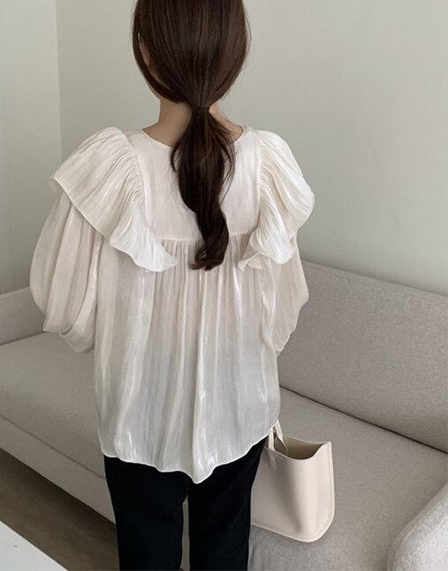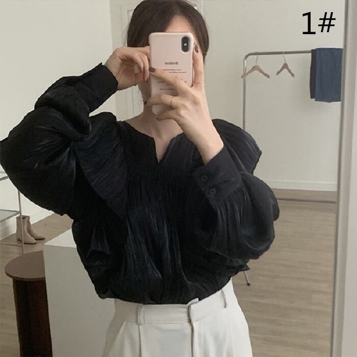 2022春新作 ブラウス フレアシャツ Vネック 長袖 プリーツ レディーストップス OL