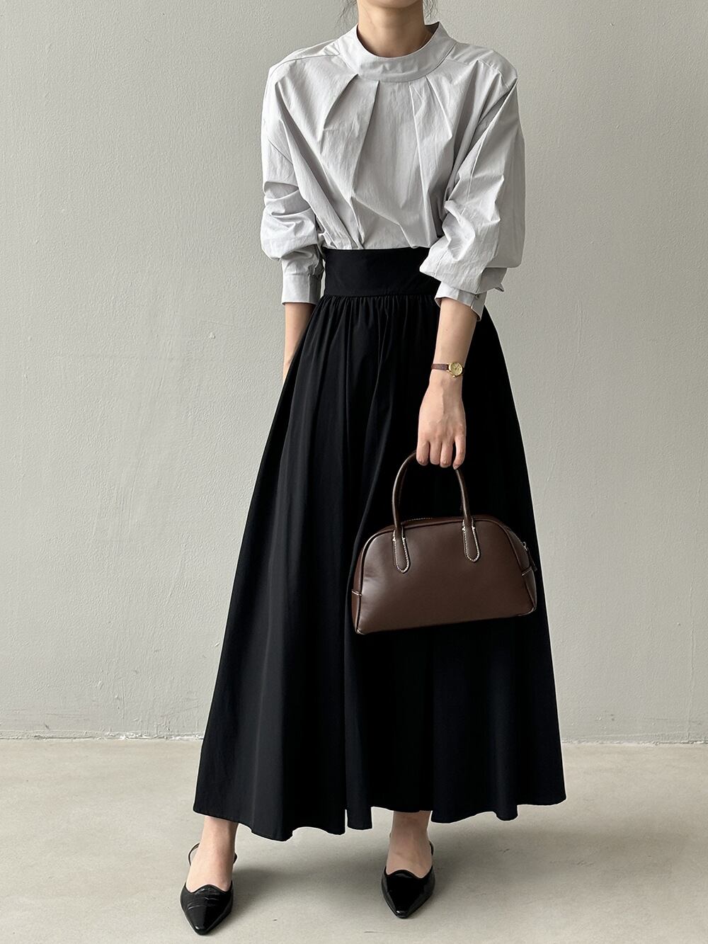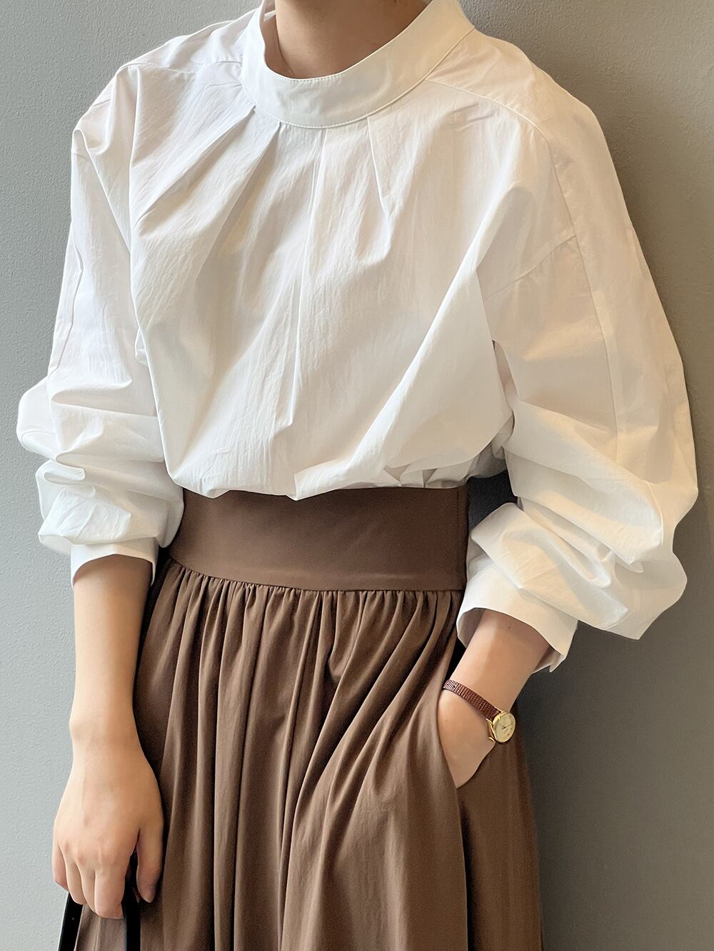 ひとつ上のオシャレを提案 シャツ シンプル 2024秋 ブラウス 詰め襟 プリーツ スリム 長袖 上着