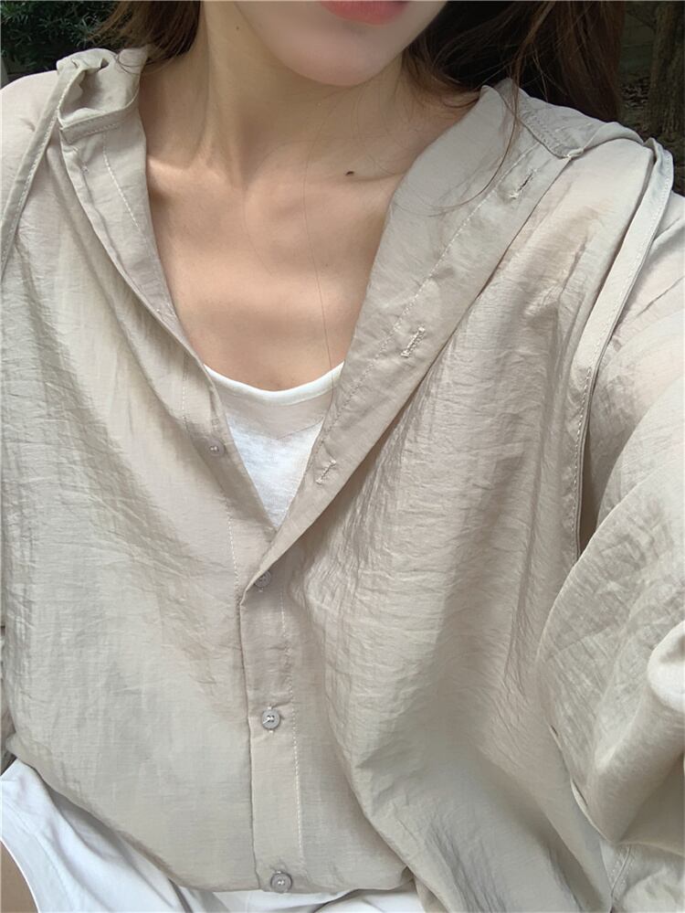 今が絶対買い流行 長袖 日焼け止めシャツ シャツ カジュアル フード付き 上着 ゆったりする ブラウス