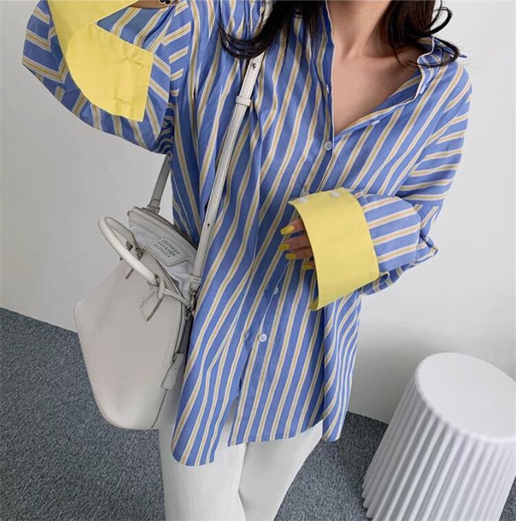 大幅値下 2024春と秋 上着 ストライプ カジュアル ブラウス ゆったりする シャツ トップス スリム