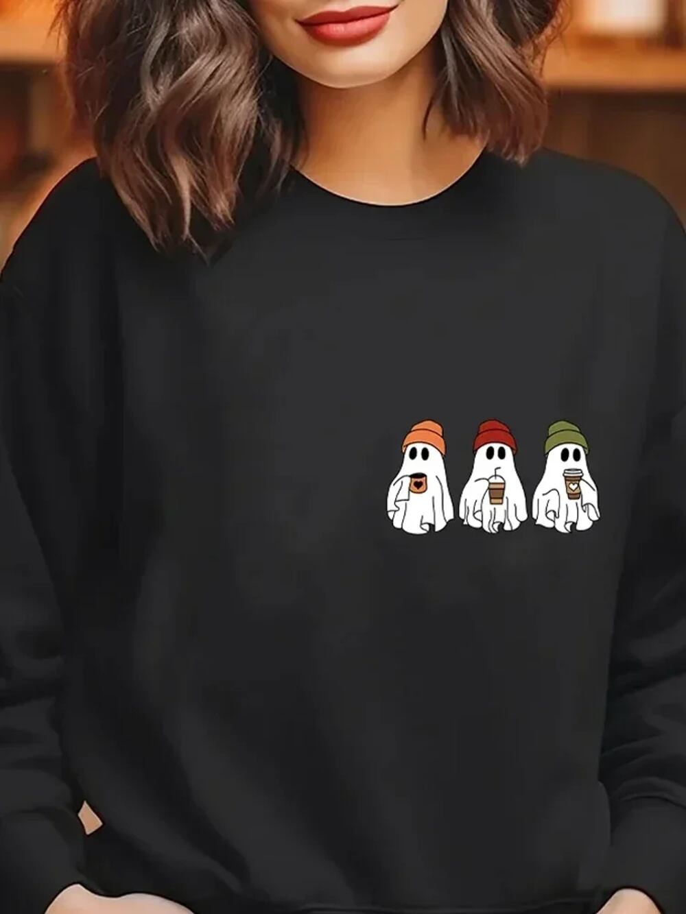 女性のハロウィーンの氷のコーヒーのスウェットシャツ,かわいい幽霊,小さな幽霊,グラフィック,ファッション,y2k服,新しい,2024 パーカー ジャージ y2k T240908171520_03 | HUG-L