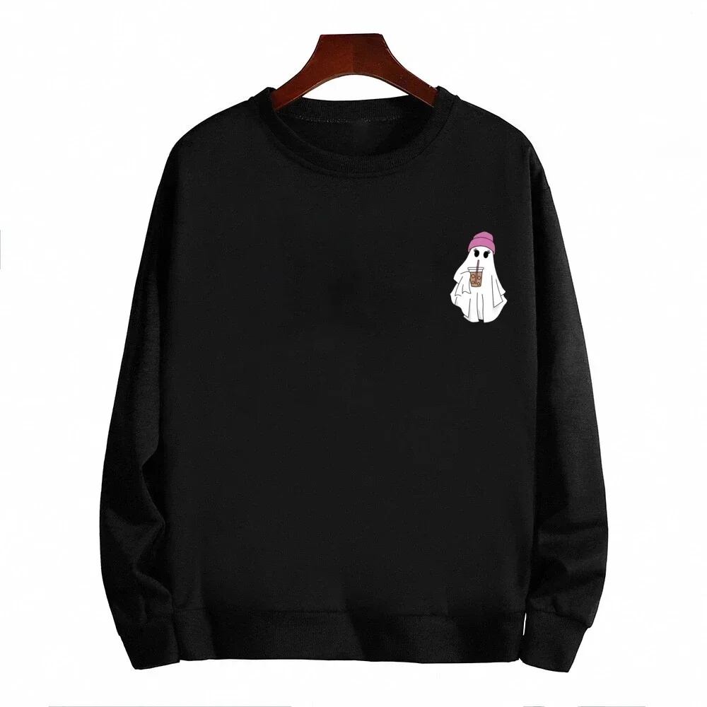 女性のハロウィーンの氷のコーヒーのスウェットシャツ,かわいい幽霊,小さな幽霊,グラフィック,ファッション,y2k服,新しい,2024 パーカー ジャージ y2k T240908171520_06 | HUG-L