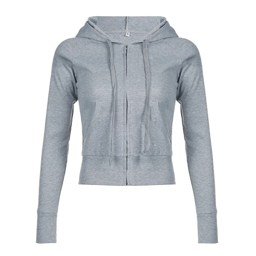 ポケット付き女性用長袖フード付きスウェットシャツ、カジュアルストリートウェア、ジップアップパーカー、スリム、ベーシック、モノクロ、秋、冬、y2k パーカー ジャージ y2k T240908195916_01 | HUG-L