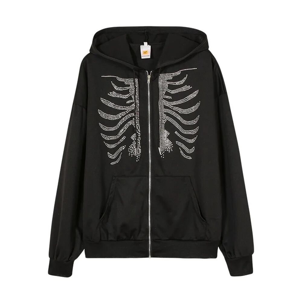 女性用フード付きスウェットシャツ,ラインストーン,スケルトン,ゴシック,ブラック,ジッパー,特大,レトロ,原宿,ストリートウェア,y2k パーカー ジャージ y2k T240908195958_01