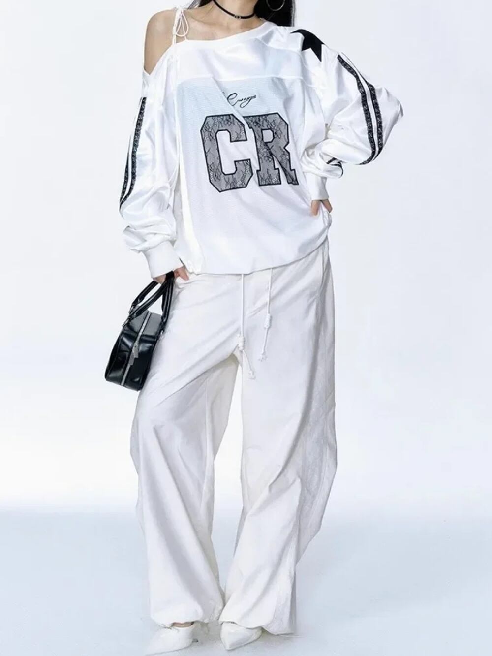 Deeptown-女性のグラフィックスウェットシャツ、オフショルダーレースパーカー、特大の長袖トップス、アメリカのヴィンテージ美的ストリートウェア、y2k パーカー ジャージ y2k T240908200250_01 | HUG-L