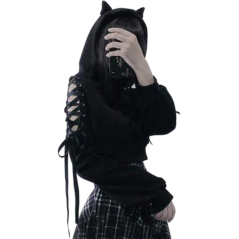 女性のためのパンクプリントスウェットシャツ,長袖,公開されたへそ,フード付きTシャツ,ストリートウェア,y2k,新しいファッション パーカー ジャージ y2k T240908200317_02