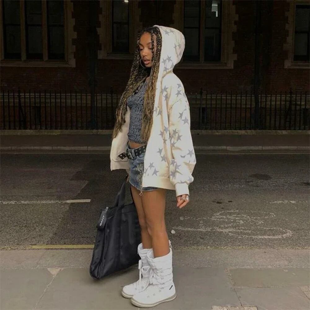 Combhasaki-女性用長袖ルーズフード付きジャケット,y2kスタイル,スターグラフィックコート,ヴィンテージストリートウェア,ジッパーダウン,特大 パーカー ジャージ y2k T240908200416_03 | HUG-L